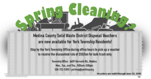 York Township receives police protection from the Medina County Sheriff and fire protection from the Erhart/York Township Fire Department.